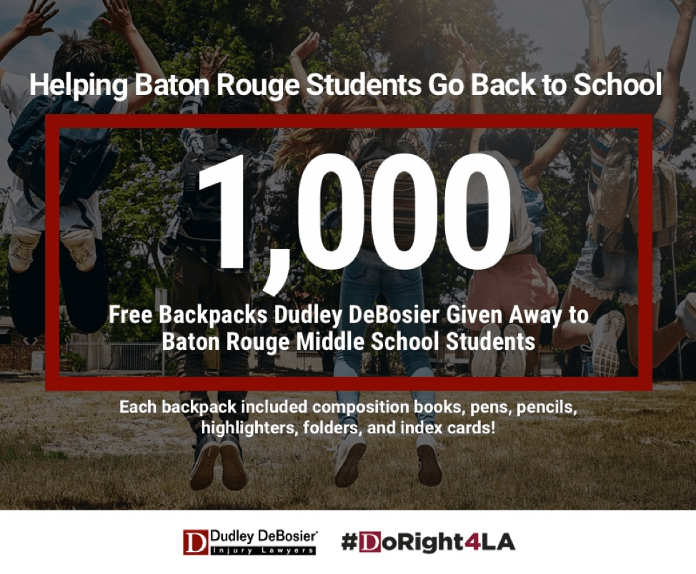 At Dudley DeBosier, we created our #DoRight4LA program to give back to the Louisiana communities we serve. This August, we decided to give back by hosting a free backpack giveaway for Baton Rouge middle school students to coincide with the back to school season. Needless to say, the response from the community was incredible!