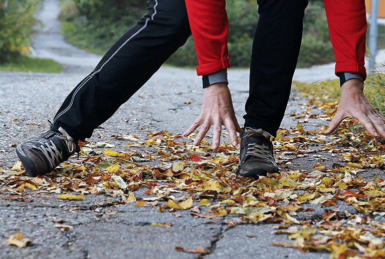 As the seasons and weather change, wet leaves become commonplace on the ground, sidewalks, and public pathways. Unfortunately, it is easy to have your feet come up from under you when walking on wet leaves.